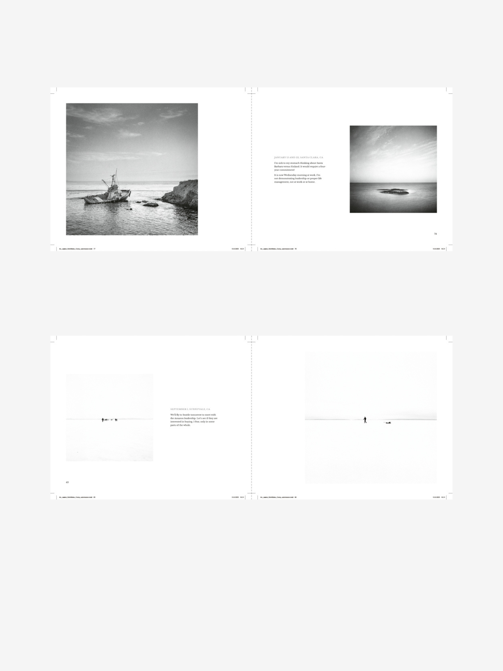 Photography, by contrast, is a recent discoveryโyet it has become a way to reinterpret his past. Inย Both Sides Now, Jaaksi revisits decades of diaries kept throughout his executive career and places them alongside new film photographs. The diaries capture the immediacy of decisions, travel, and private reflections; the photographs, quiet and tactile, offer space for perspective and clarity.